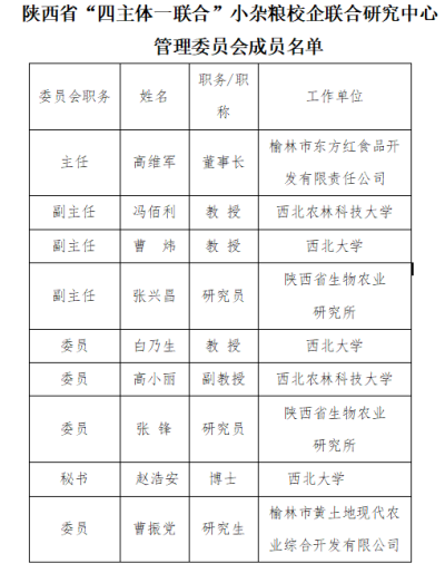 陜西省“四主體一聯(lián)合”小雜糧校企聯(lián)合研究中心簡(jiǎn)介